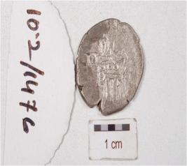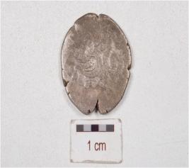 | Description / विवरण | A die struck silver coin, circular in shape, motif on both the sides, eroded surface and uneven periphery. |