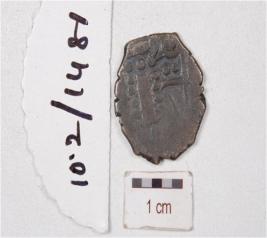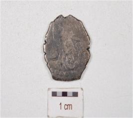 | Description / विवरण | A die struck silver coin, roughly circular in shape, spiral, dotted, rectangular elongated, and many unreadable motif on both sides, uneven periphery and eroded surface. |