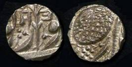 | Description / विवरण | Descrpn./Obv In the centre, a chhatra with Sa and Ta in Gurumukhi script on the left and right of its shaft; traces of the Persian legend seen on the obverse of the bigger Nanakshahi coins of Amritsar mint are also seen. Descrpn./Rev Big peepal leaf and traces of the Persian legend seen on the reverse of the bigger Nanakshahi coins of Amiritsar mint - Shri Amritsarjiv zarb [VS Year] Takht maimanat julus manus Akal Bakht. Especially traces of alif of Akal and te of Takht and maimanat are seen |