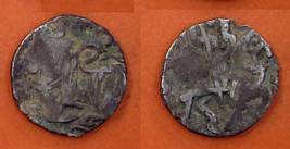 | Description / विवरण | Descrpn./Obv Recumbent bull facing left, wearing jhula (saddle cloth), with trisula (trident) symbol on rump. Above, legend in Sarada script Sri Samantadeva . Descrpn./Rev Rider with lance on caparisoned horse facing right. On left, Sarada letter bhi and on right, Sarada letter ta |