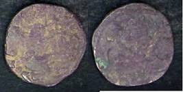 | Description / विवरण | Descrpn./Obv Recumbent bull facing left, wearing jhula (saddle cloth), with trisula (trident) symbol on rump. Above, legend in Sarada script Sri Samantadeva . Descrpn./Rev Rider with lance on caparisoned horse facing right. On left, Sarada letter bhi and on right, Sarada letter ta |