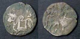 | Description / विवरण | Descrpn./Obv Recumbent bull facing left, wearing jhula (saddle cloth), with trisula (trident) symbol on rump. Above, legend in Sarada script Sri Samantadeva . Descrpn./Rev Rider with lance on caparisoned horse facing right. On left, Sarada letter bhi and on right, Sarada letter ta |