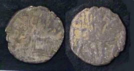 | Description / विवरण | Descrpn./Obv Recumbent bull facing left, wearing jhula (saddle cloth), with trisula (trident) symbol on rump. Above, legend in Sarada script Sri Samantadeva . Descrpn./Rev Rider with lance on caparisoned horse facing right. On left, Sarada letter bhi and on right, Sarada letter ta |