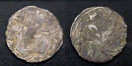 | Description / विवरण | Descrpn./Obv Recumbent bull facing left, wearing jhula (saddle cloth), with trisula (trident) symbol on rump. Above, legend in Sarada script Sri Samantadeva . Descrpn./Rev Rider with lance on caparisoned horse facing right. On left, Sarada letter bhi and on right, Sarada letter ta |