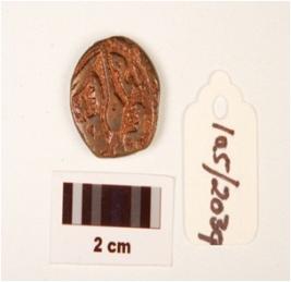 | Description / विवरण | A small thin copper coin round in shape, cutting edges, arabic inscription on reverse and obverse sides and polished surface. |