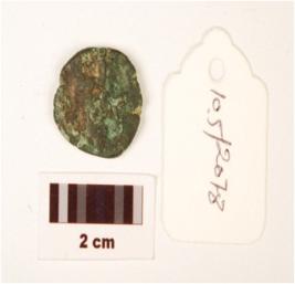 | Description / विवरण | A small thin copper coin round in shape, cut marks on edges, corroded, figure of human is dipicting on obverse and reverse sides but worn out, formation of patina is visible on surface. |