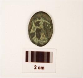 | Description / विवरण | A small thin copper coin, round in shape, cut marks on edges and formation of patina is visible on surface. |