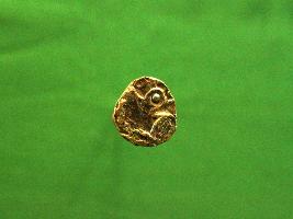 | Description / विवरण | A coin depicting a bull seated to left with Brahmi inscription around it on the obverse and a mounted horseman on the reverse. |