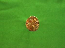 | Description / विवरण | A coin depicting a bull seated to left with Brahmi inscription around it on the obverse and a mounted horseman on the reverse. |