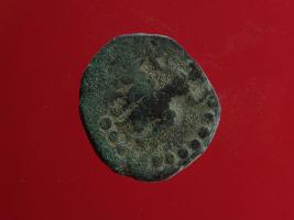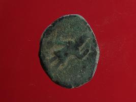 | Description / विवरण | This is a coin made of copper. The impression on obverse side depicts a deity sitting on bull and on reverse side there is Vasudeva whose one hand is raised above. Shape is circular. Hard patina and heavy dust is deposited on the surface. The depression depicts that it may be a standing human figurine. |