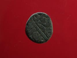 | Description / विवरण | This is a coin made of copper. Shape is circular. Hard patina and heavy dust is deposited on the surface. The depression depicts some inscription marks on it. |