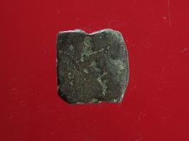 | Description / विवरण | This is a copper coin. Shape is almost square. Hard patina and heavy dust deposited on the surface. There is many pit mark on the surface. Appearance is greenish. |