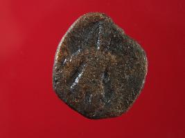 | Description / विवरण | This is a copper coin. Shape is circular and surface is smooth. Hard patina deposited on it. The depression on obverse side depict it may be a standing human figurine and reverse side is rough. Colour of object is copper brown. |