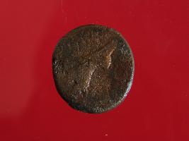 | Description / विवरण | This is a copper coin. The depression on obverse side depict Kartikaya God holding a spear in one hand and other hand is placed on waist and reverse side is smooth. It is treated coin. Appearance is copper brown. |