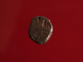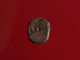 | Description / विवरण | This is a coin made of copper. Shape is almost circular and surface is smooth. The depression on obverse side depicts standing human figurine and on reverse side two dotted design. Colour of object is copper brown. |