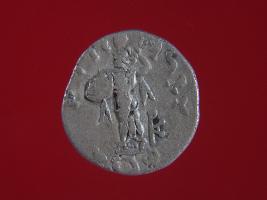 | Description / विवरण | Trench B-3, LxB-D C3 x 1.50 mts x 4.80 mts - 3.90 mts at X, Stratum Layer 11 This is a coin made of silver alloy. The positives of the coin have a monarch with a hat on one side and the other side is having a standing figure holding a shield in his one hand with a raising another arm. This may be a standing figurine of monarch or deity. Surface is lusty. |