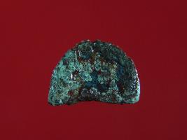 | Description / विवरण | Trench D2, LxB-D D2 3.80 mts x 2.20 mts - 3.10 mts, Stratum Layer 8 Coin made of copper alloy broken and lost from one side. By its appearance it seems that it was circular in shape. Hard patina with dust is deposited on it. It was used for trade purposes in earliar times. Surface is smooth and appearance is of green brown colour. |