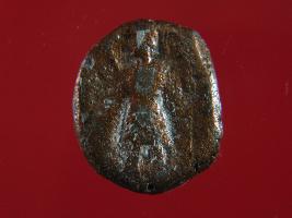 | Description / विवरण | Trench Surface find This is a coin made of copper. On its obverse side there is a human figurine may be of vasudeva holding a spear in its left hand and on the reverse side there may be bull and shiva alongwith beaded design around it. Surface is smooth and colour is copper brown. |