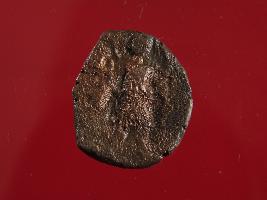 | Description / विवरण | This is copper coin. Shape is circular and surface is smooth. It is treated coin. A standing human figurine may be of vasudeva in obverse side and oversr side is faded. Appearance is copper brown. |