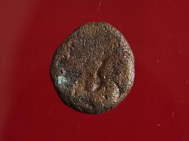 | Description / विवरण | This is copper coin. Shape is circular and surface is smooth. It is treated coin. The depression depict on obverse side is Vasudeva and reverse side is faded. Appearance is copper brown. |