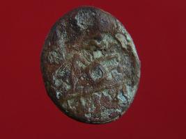 | Description / विवरण | Trench B-3, LxB-D B3 x 2.75 mts x B4 x 3.35 mts - 1.70 mts at B3, Stratum Layer 12 Coin made of copper alloy almost circular in shape. It was used for trade purposes in earliar times. Hard patina is deposited on it and its surface is smooth and uneven. Some human figurine on its one side. Appearance is of brown colour. |