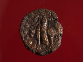 | Description / विवरण | This is copper coin. Shape is circular and surface is smooth. It is treated coin. The depression depict on obverse side is God Shiva seating on bull and there is beaded designed around it. Reverse side depicts a standing human figurine. Appearance is copper brown. |