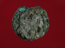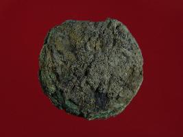 | Description / विवरण | Trench C2, LxB-D D2 1.50 mts x D3 4.85 mts - 1.65 mts, Stratum Layer 3 Coin made of copper alloy almost circular in shape. It was used for trade purposes in earliar times. Mud with hard patina with dust and dirt is deposited on it and its surface is rough and uneven. Damaged on the margin. Appearance is muddy and greenish. |