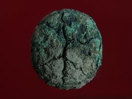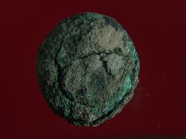 | Description / विवरण | Trench B4, LxB-D C5 5.65 m x C4 2.30 m - 2.30 m, Stratum Layer 4 Coin made of copper alloy almost circular in shape. It was used for trade purposes in earliar times. Hard patina with dust and dirt is deposited on it and its surface is rough and uneven. Cracks on its surface. Appearance is muddy and greenish. |