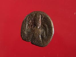 | Description / विवरण | This is a copper coin. The depression depicts on obverse side is a standing human figurine may be of vasudeva and on reverse side there is a seated human figurine. Shape is circular and surface is rough with copper brown. |