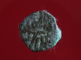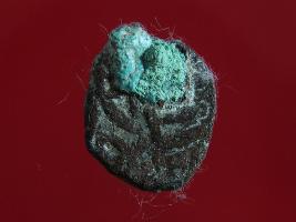 | Description / विवरण | Trench Bx1-Bx2, Stratum Fortification above line floor Coin made of copper alloy almost circular in shape. It is of very small size. It was used for trade purposes in earliar times. Some inscriptions on its both sides. Patina with dust is deposited on it and its surface is smooth. Appearance is of brown and turquoise colour. |