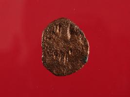 | Description / विवरण | This is copper coin. Shape is circular and surface is smooth. It is treated coin. The depression depict on obverse side is God Shiva seating on bull. Reverse side depicts a standing human figurine may be of vasudeva. Appearance is copper brown. |