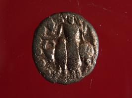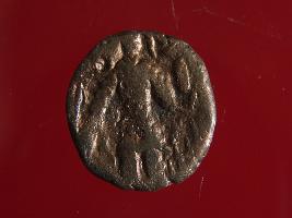 | Description / विवरण | This is a copper coin. Shape is almost circular. Surface is smooth and shine. The depression on the overse side depicts shiva holding a trident in his left hand and another trident is shown near the right hand the vahana below depict bull and reverse side shiva seated on the bull. It is treated coin. Appearance is copper brown. |
