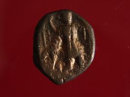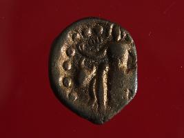 | Description / विवरण | This is a copper coin. Shape is almost circular. Surface is smooth and shine. The depression on the overse side depicts shiva holding a trident in his left hand and another trident is shown near the right hand the vahana below depict bull and reverse side shiva seated on the bull. It is treated coin. Appearance is copper brown. |