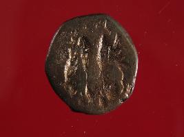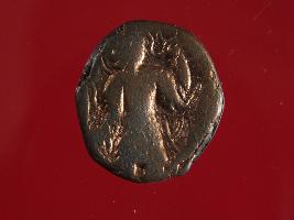 | Description / विवरण | This is a copper coin. Shape is almost circular. Surface is smooth and shine. The depression on the obverse side depicts shiva seated on the bull and reverse side shiva holding a trident. Appearance is copper brown. |