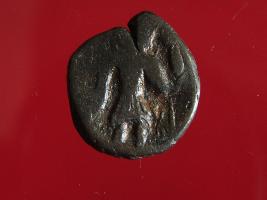 | Description / विवरण | This is a copper coin. Shape is almost circular. Surface is smooth and shine. The depression on the obverse side depicts shiva seated on the bull and reverse side shiva holding a trident. Appearance is copper brown. |