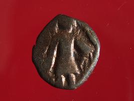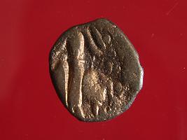 | Description / विवरण | This is a copper coin. Shape is almost circular. Surface is smooth and shine. The depression on the overse side depicts shiva holding a trident in his left hand and another trident is shown near the right hand the vahana below depict bull and reverse side shiva seated on the bull. It is treated coin. Appearance is copper brown. |