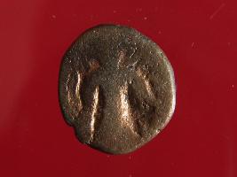 | Description / विवरण | This is a copper coin. Shape is circular and surface is smooth and shine. The depression on overse side depict standing figurine of vasudeva and reverse side is seating posture of human figurine. Colour of object is copper brown. |