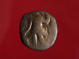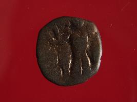 | Description / विवरण | This is a copper coin. Shape is almost circular. Surface is smooth and shine. The depression on the overse side depicts shiva holding a trident in his left hand and another trident is shown near the right hand the vahana below depict bull and reverse side shiva seated on the bull. It is treated coin. Appearance is copper brown. |