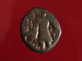 | Description / विवरण | This is a copper coin. Shape is almost circular. Surface is smooth and shine. The depression on the overse side depicts shiva holding a trident in his left hand and another trident is shown near the right hand the vahana below depict bull and reverse side shiva seated on the bull. It is treated coin. Appearance is copper brown. |