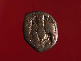 | Description / विवरण | This is a copper coin. Shape is almost circular. Surface is smooth and shine. The depression on the overse side depicts shiva holding a trident in his left hand and another trident is shown near the right hand the vahana below depict bull and reverse side shiva seated on the bull. It is treated coin. Appearance is copper brown. |