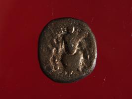 | Description / विवरण | This is a copper coin. Shape is almost circular. Surface is smooth and shine. The depression on the overse side depicts shiva holding a trident in his left hand and another trident is shown near the right hand the vahana below depict bull and reverse side shiva seated on the bull. It is treated coin. Appearance is copper brown. |