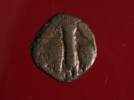 | Description / विवरण | This is a copper coin. Shape is almost circular. Surface is smooth and shine. The depression on the overse side depicts shiva holding a trident in his left hand and another trident is shown near the right hand the vahana below depict bull and reverse side shiva seated on the bull. It is treated coin. Appearance is copper brown. |
