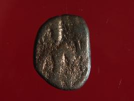 | Description / विवरण | This is a copper coin. Shape is almost circular. Surface is smooth and shine. The depression on the overse side depicts a shiva seated on bull and reverse side is standing human figurine. It is treated coin. Appearance is copper brown. |