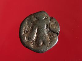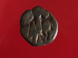 | Description / विवरण | This is a copper coin. Shape is almost circular. Surface is smooth and shine. The depression on the obverse side depicts shiva holding a trident in his left hand and another trident is shown near the right hand the vahana below depict bull and reverse side shiva seated on the bull. It is treated coin. Appearance is copper brown. |