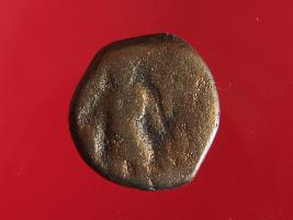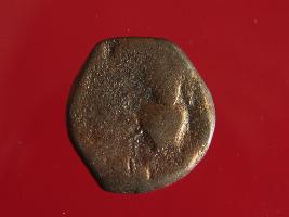| Description / विवरण | This is a copper coin. The depression on obverse side depicts standing figurine of Vasudeva and on reverse side there is a Shiva seated on bull. |