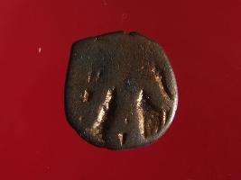 | Description / विवरण | This is a copper coin. Shape is almost circular. Surface is smooth and shine. The depression on the overse side depicts shiva holding a trident in his left hand and another trident is shown near the right hand the vahana below depict bull and reverse side shiva seated on the bull. It is treated coin. Appearance is copper brown. |