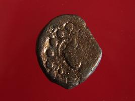 | Description / विवरण | This is a copper coin. Shape is almost circular. Surface is smooth and shine. The depression on the overse side depicts shiva holding a trident in his left hand and another trident is shown near the right hand the vahana below depict bull and reverse side shiva seated on the bull. It is treated coin. Appearance is copper brown. |