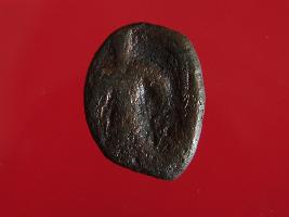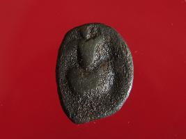 | Description / विवरण | This is a copper coin. Shape is almost circular. Surface is smooth and shiny. The depression on the obverse side depicts standing human figurine and reverse side deity in a seating posture.Colour of object is copper brown. It is a treated coin. |