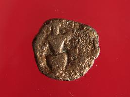 | Description / विवरण | This is a copper coin. Shape is almost circular. Surface is smooth and shine. The depression on obverse side is a deity shown in sitting posture and reverse side cannot be identified. It is treated coin. Appearance is copper brown. |