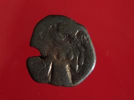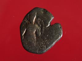 | Description / विवरण | This is a copper coin. Shape is almost circular. Surface is smooth and shiny. The depression on the ovberse side depicts standing human figurine of vasudeva and reverse side is shiva seated on bull. Appearance is copper brown. It is a treated coin. |